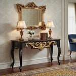 Como fazer igual a foto? Pintura do corpo em Preto Brilho, pintura do tampo em Verniz Capuccino Acetinado, entalhe central em dourado (obrigatório) e bordas e arestas em Provençal.