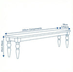 Com seus **200cm de extensão**, este banco oferece uma funcionalidade excepcional para áreas amplas: