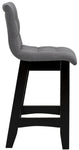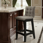 Descrição: Banqueta alta em madeira maciça com encosto e assento estofados e acabamento em Verniz, combina elegância e funcionalidade em um só móvel.