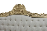 Descrição: Linda cabeceira para cama fabricada em madeira maciça com lindos entalhes feitos à mão e estofamento com tachas e cristais.