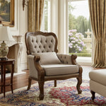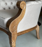 Caracterizada por suas linhas curvas, detalhes decorativos elaborados, estrutura feita em Madeira Maciça e entalhes feitos á mão, esta poltrona é um símbolo de elegância e sofisticação.