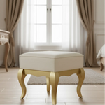 Design Clássico: Inspirado no requinte do período de Luis XV, este puff possui um formato quadrado que exala elegância e charme histórico.