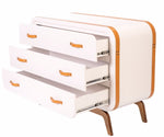 Descrição: Transforme seu ambiente com a elegância e simplicidade da Cômoda Escandinava 3 Gavetas. Inspirada no design nórdico, essa peça combina funcionalidade e estilo em um móvel compacto e sofisticado. Possui o corpo feito em MDF e base em madeira maciça, seu acabamento suave destaca os veios naturais da madeira, trazendo um toque de natureza para dentro de casa. Puxadores em couro fazem uma combinação única para residências modernas.