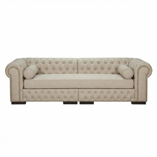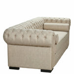 Traga luz e sofisticação para o seu ambiente com a elegância atemporal do Sofá Chesterfield 3 Lugares em Linho Claro. Com 230cm de imponência, este modelo revisita o design britânico sob uma ótica contemporânea, oferecendo uma textura suave que amplia a sensação de espaço na sua sala de estar.
