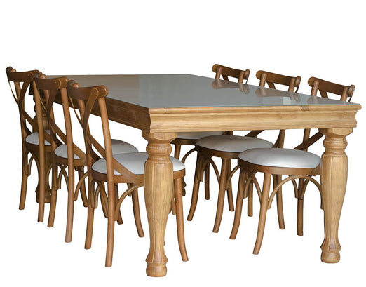 Descrição: Transforme sua sala de jantar em um espaço elegante e acolhedor com nossa Mesa de Jantar Torneada Safari em Madeira.