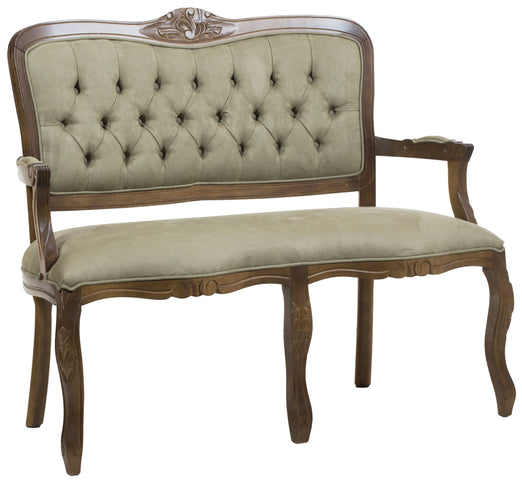 Sua estrutura elegante e curvilínea é adornada com entalhes intrincados, que realçam sua beleza e refinamento. Os braços arqueados oferecem um convite irresistível ao conforto e à intimidade, enquanto as pernas esculpidas adicionam uma sensação de leveza e graça.