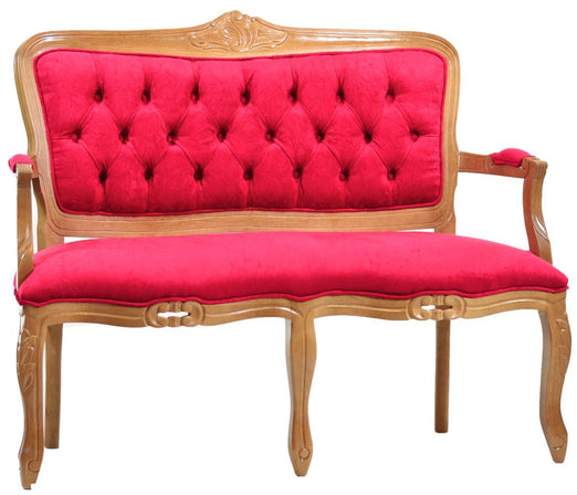 Sua estrutura elegante e curvilínea é adornada com entalhes intrincados, que realçam sua beleza e refinamento. Os braços arqueados oferecem um convite irresistível ao conforto e à intimidade, enquanto as pernas esculpidas adicionam uma sensação de leveza e graça.