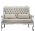 Descrição: A Namoradeira Vitoriana Branco Provençal com Aveludado Creme é uma peça de mobiliário elegante e sofisticada, ideal para adicionar um toque de charme clássico a qualquer ambiente. Esta namoradeira é inspirada no estilo vitoriano, conhecido por seus detalhes ornamentados e design requintado. A estrutura branca provençal proporciona um ar de pureza e frescor, enquanto o estofado em aveludado creme oferece conforto e um toque suave, combinando perfeitamente com a estética romântica e delicada do móvel.