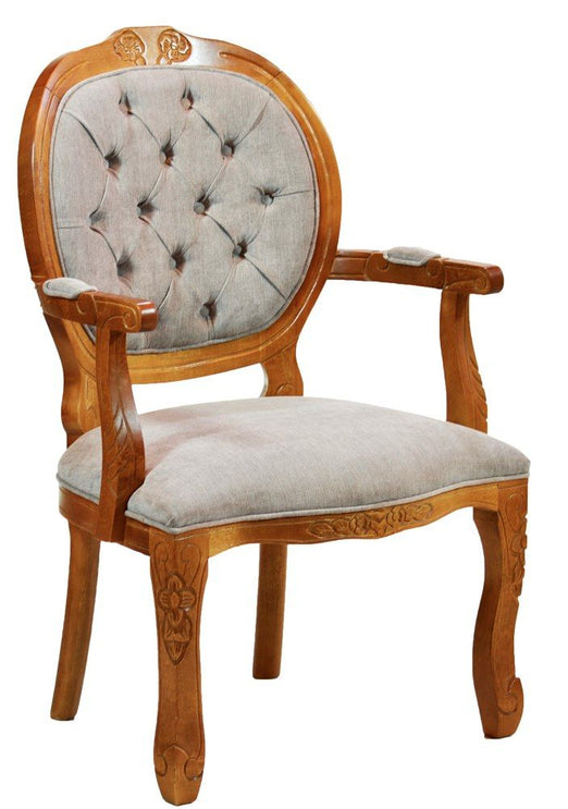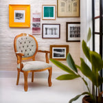 Descrição: A Poltrona Medalhão II Entalhada é uma obra-prima de elegância e artesanato refinado. Cada detalhe é uma expressão de requinte, desde os delicados entalhes que adornam sua estrutura até os luxuosos estofados que oferecem conforto incomparável.
