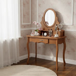 Com linhas suaves e um espelho oval que remete ao romantismo e à delicadeza, este móvel é ideal para transformar a rotina de cuidados pessoais em um momento especial. Além da beleza, oferece três gavetas para manter maquiagens, acessórios e objetos pessoais sempre organizados e de fácil acesso.
