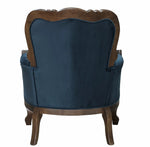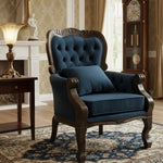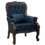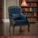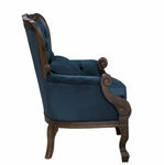 Poltrona Vitoriana com Verniz Capuccino Acetinado e Tecido Aveludado Azul