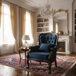 Renove sua decoração com a Poltrona Vitoriana em acabamento exclusivo de verniz capuccino acetinado e tecido aveludado azul. Inspirada no requinte da era vitoriana, esta peça une tradição e sofisticação, tornando-se o destaque ideal para salas de estar, escritórios ou ambientes de leitura.