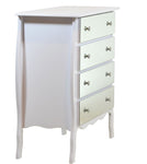 As quatro gavetas espaçosas oferecem amplo espaço de armazenamento para roupas, acessórios e outros itens essenciais do dia a dia, mantendo tudo organizado e ao alcance. O espelho embutido na parte superior não só amplia visualmente o ambiente, mas também proporciona um local conveniente para verificar seu visual.
