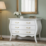 Descrição: A Cômoda Bombê 3 Gavetas é uma peça de mobiliário que combina elegância clássica com funcionalidade contemporânea. Com suas curvas suaves, silhueta graciosa e puxadores trabalhados, esta cômoda é um verdadeiro ponto focal para qualquer espaço.