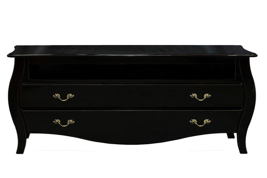 Descrição: Transforme a sua sala de estar com o sofisticado Rack Bombê de 2 Gavetas com Nicho. Este móvel combina elegância e funcionalidade, ideal para quem busca estilo e praticidade. Com um acabamento em Preto Brilho, ele se destaca em qualquer ambiente, oferecendo um toque moderno e luxuoso.