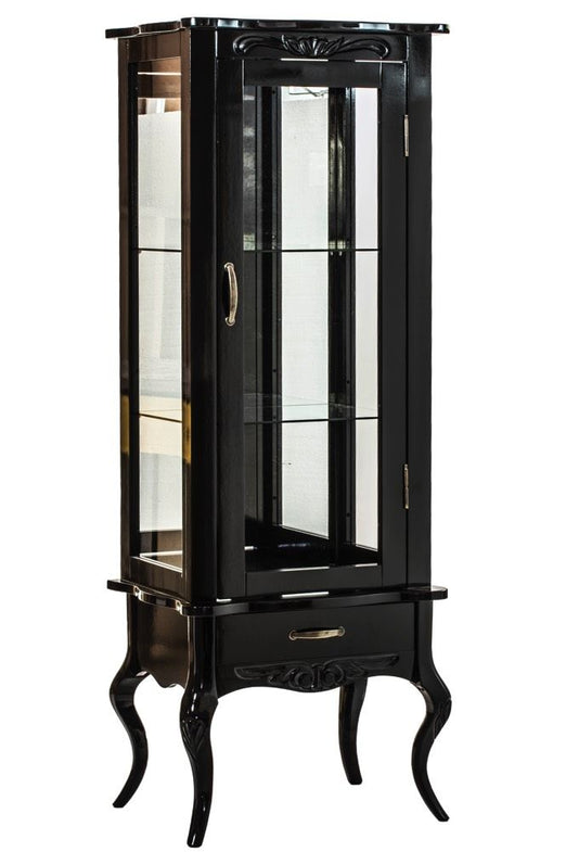 Descrição: Linda cristaleira com uma porta e uma gaveta em Madeira Maciça e acabamento em várias opções de cores. Detalhes entalhados à mão trazem muito charme para esta peça clássica.