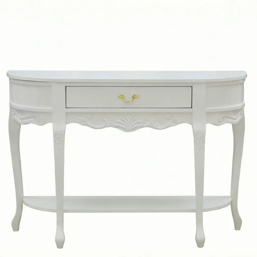 Eleve a sofisticação do seu décor com a elegância e a luminosidade deste aparador em madeira com acabamento em Branco Brilho. Uma peça que une a funcionalidade prática de uma gaveta central ao charme atemporal do estilo clássico, ideal para projetos de decoração de alto padrão que buscam leveza e requinte.