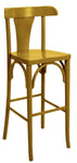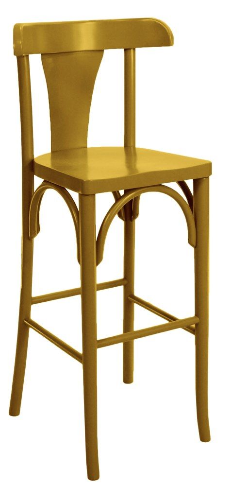 Descrição: Banqueta alta em madeira maciça vergada e assento laminado, com encosto super confortável.