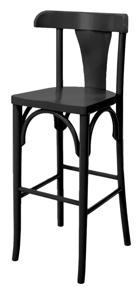Descrição: Banqueta alta em madeira maciça vergada e assento laminado, com encosto super confortável.