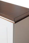 Como fazer igual a foto? Pintura geral em Branco Fosco e tampo com gaveta interna em Verniz Mel Acetinado.