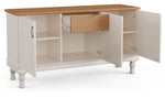 Com três portas, uma gaveta e prateleiras, oferece amplo espaço de armazenamento para organizar utensílios de jantar, louças, ou qualquer outra coisa que você precise guardar com estilo.