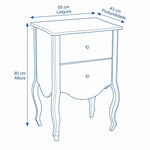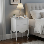 Transforme a decoração do seu ambiente com esta sofisticada Mesa de Cabeceira (Criado-mudo) de 2 Gavetas. Com um design atemporal inspirado no estilo clássico e provençal, este móvel é a peça-chave para quem busca funcionalidade sem abrir mão do requinte.