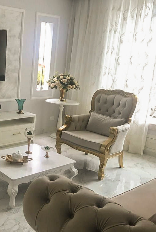 Se você está em busca de montar um ambiente que exale sofisticação e charme atemporal, a combinação entre uma poltrona vitoriana dourada, uma mesa de centro entalhada branca fosca e um sofá Chesterfield é a escolha perfeita. Esses três móveis, com estilos clássicos e elegantes, podem transformar qualquer sala de estar em um espaço digno de aplausos. A seguir, explicamos como nossa cliente integrou de forma harmônica para criar um ambiente luxuoso e aconchegante.
