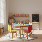 A mesa e as cadeiras são feitas com materiais duráveis e muito resistentes, garantindo a sua longevidade e estabilidade. As cadeiras possuem o tamanho perfeito para os pequenos, proporcionando apoio e conforto durante as horas de diversão ou alimentação. Além disso, o design colorido e lúdico vai estimular a criatividade e a imaginação das crianças, tornando o ambiente mais alegre e convidativo.
