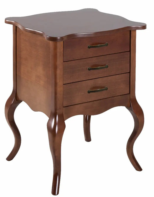Descrição: O Criado Mudo Luís XV Clássico com 3 Gavetas é uma peça de mobiliário que evoca a elegância e o requinte do estilo Luís XV, marcado por suas linhas curvas, detalhes esculpidos e acabamentos refinados. Este móvel é uma obra-prima de design, combinando a beleza intemporal do estilo clássico com a funcionalidade contemporânea.